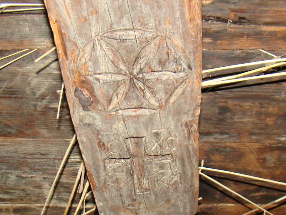 A rosette on a crossbeam can be found in a Lemko cottage in the Rural Architecture Museum of Sanok (Poland). dating back to 1681