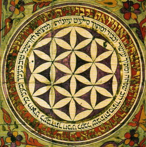 A Jewish painting that has a Hebrew inscription around the circle of the Flower of Life. Unplaced, Undated. Unable to trace original photographer.