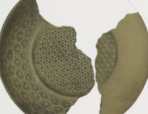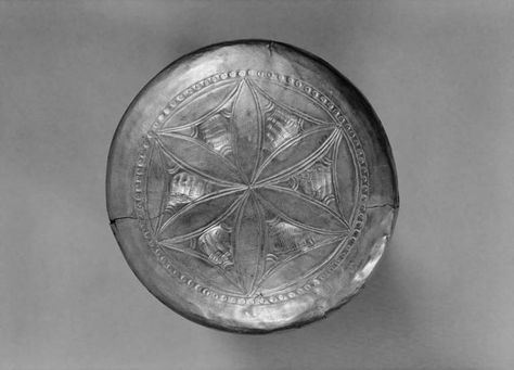 The underside of a golden goblet6in the museum of Louvre. Excavation report7shows several artifacts having similar six-petal rosettes with surrounding petals (or larger rosette nets) under the goblets and beakers. Marlik, Iran, 1400 – 1100 BC. (Photo © 1985 Photo RMN / Pierre et Maurice Chuzeville)
