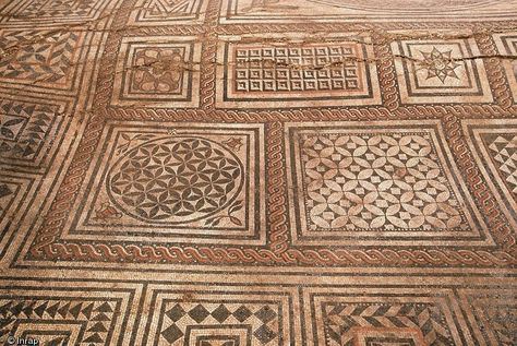 Geometrical motifs in the mosaics visible in the Museum of Fine Arts and Archaeology. Besancon, France, Gallo-Roman Period 123 BC – 486 AD.