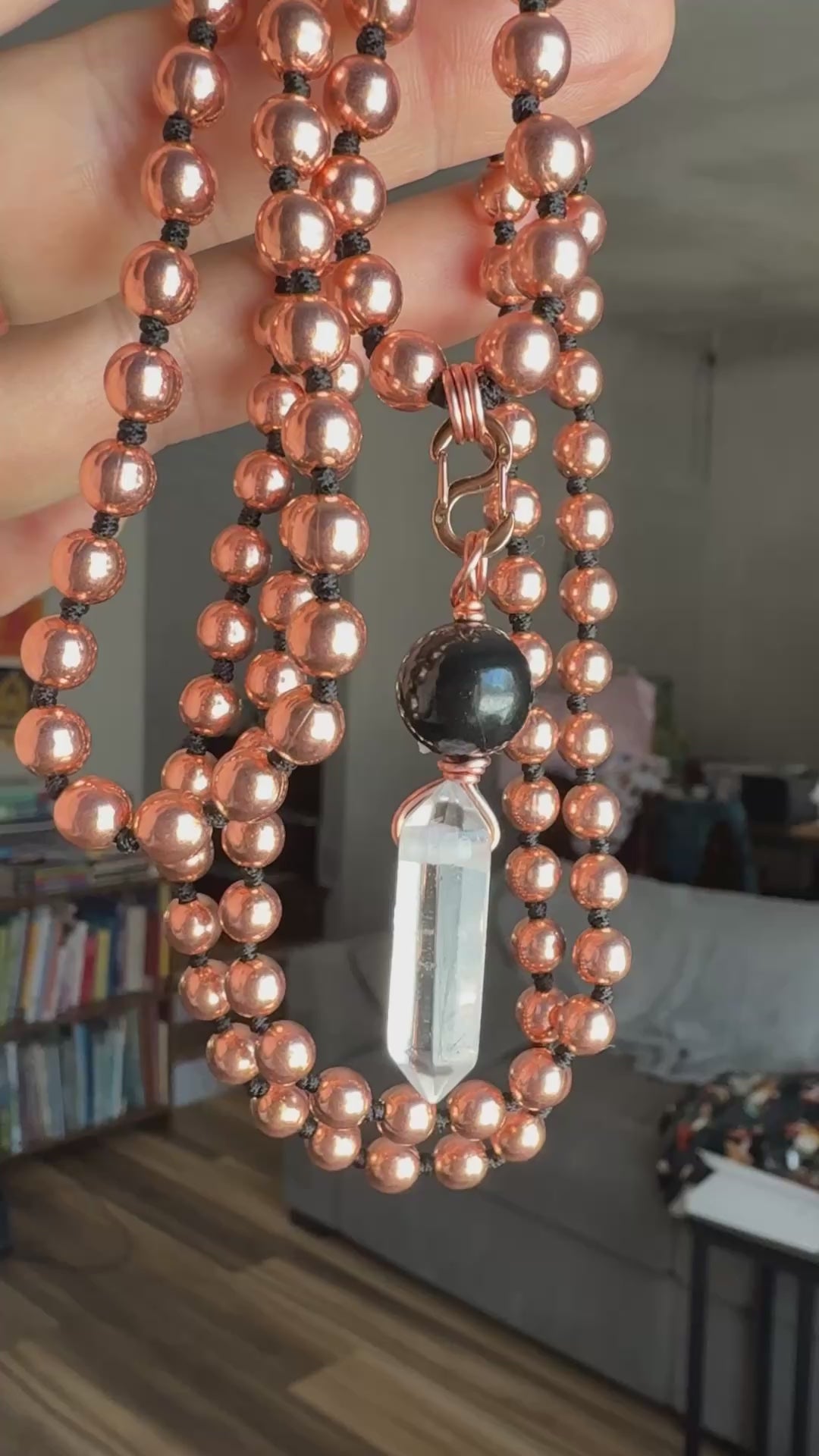 Copper Interchangeable Mala Necklace with Shungite & Quartz Point