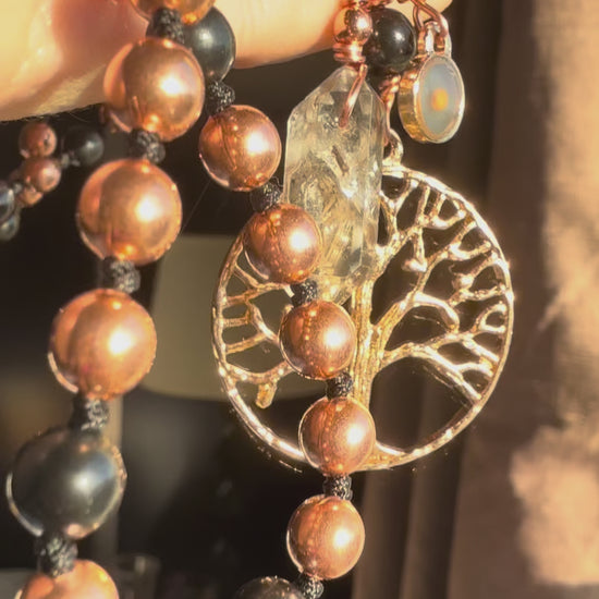 Copper Mala with Shungite, Smokey Quartz, Tibetan Quartz, a mustard seed, and tree charm ❤️