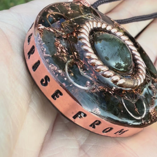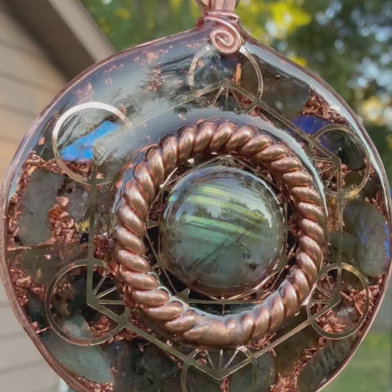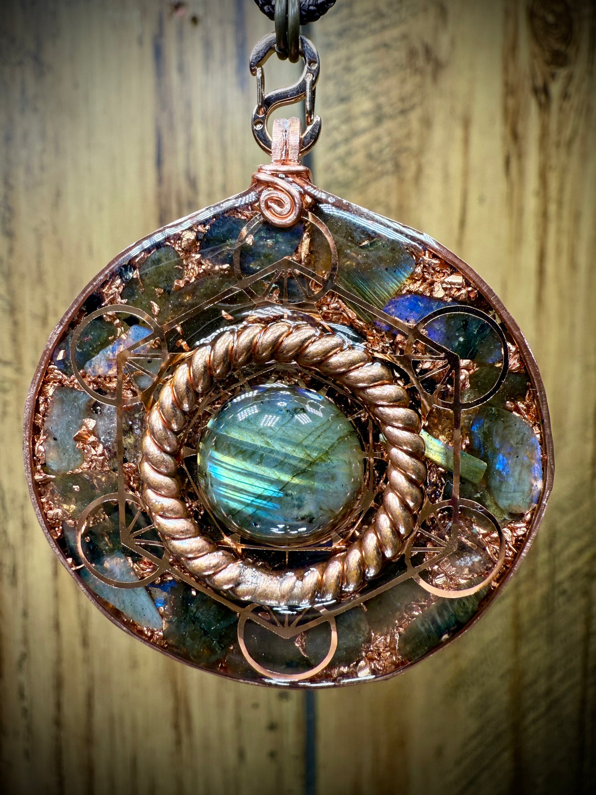 with Labradorite, elite shungite, diamond quartz, clear quartz, copper, 1/8 sacred cubit tensor ring and labradorite cabochon.