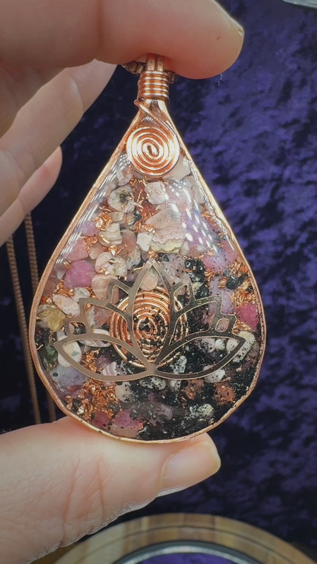 The Crystals: Rhodochrosite: Promotes self-love and emotional healing. Pink Tourmaline: Supports compassion and heart-centered decision-making. Rose Petals: Symbolize love, beauty, and spiritual connection. Elite Shungite: Grounds and protects your energy. Herkimer Diamond: Amplifies clarity and intuition. Copper: Enhances energy flow and strengthens heart-mind alignment.